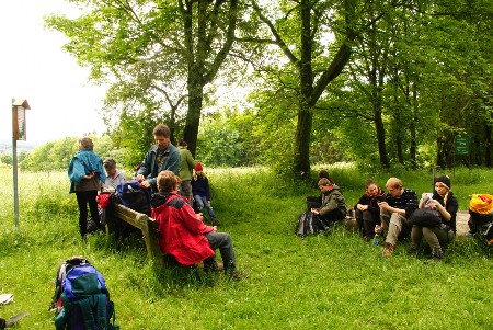 Am Freitag gesellten sich Elke und Wolfram noch zu uns. Da es nachts noch geregnet hatte. fuhren wir ins Wolkensteiner Zschopautal. Von dort war uns bekannt. dass der Fels recht sonnig lag und meist rasch abtrocknete. Wir gingen zur Dachwand und fanden einige kletterbare Wege. die allerdings noch etwas nass waren.Also entschlossen wir uns eine Wanderung in der Umgebung zu unternehmen. um am Nachmittag noch einmal wiederzukommen und einige Wege zu klettern. Die Wanderung durch die Wolkensteiner Schweiz ging über die Anton-Günter-Höhe (berühmtester Dichter und Sänger des Erzgebirges). die Himmelsleiter im Zschopautal zurück zurDachwand.